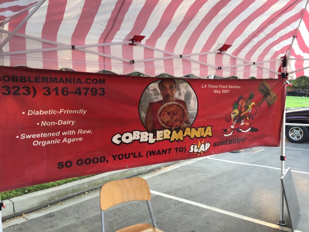 Cobblermania has booths at the following farmer's markets: Torrance (Sat 8-1), Culver City (Tue 2-7), LaCienega (Thurs 2-7) and Hollywood (Sun 8-1), We also do catering as well as a lot of local events and festivals. In addition, as there were too many plan check issues at the LaBrea/Venice stand, we are now only vending at the above farmers markets while looking for a "TURN-KEY" retail location. I love our business and customers (cobblermaniacs)!
