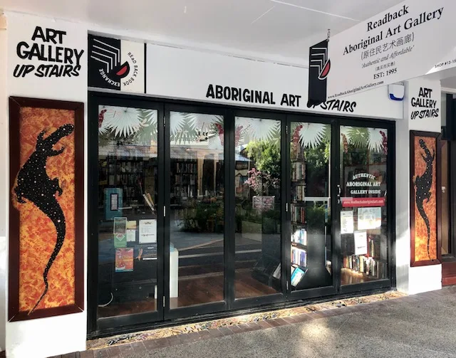 Readback Aboriginal Art Gallery Darwin - Authentic & Affordable Aboriginal Art Gallery located in the heart of the City. Our paintings are purchased from local Indigenous artists. They are signed and come with a Certificate of Authenticity. We have a second hand book shop at street level and a huge air-conditioned gallery upstairs. Aboriginal art gallery in Australia.