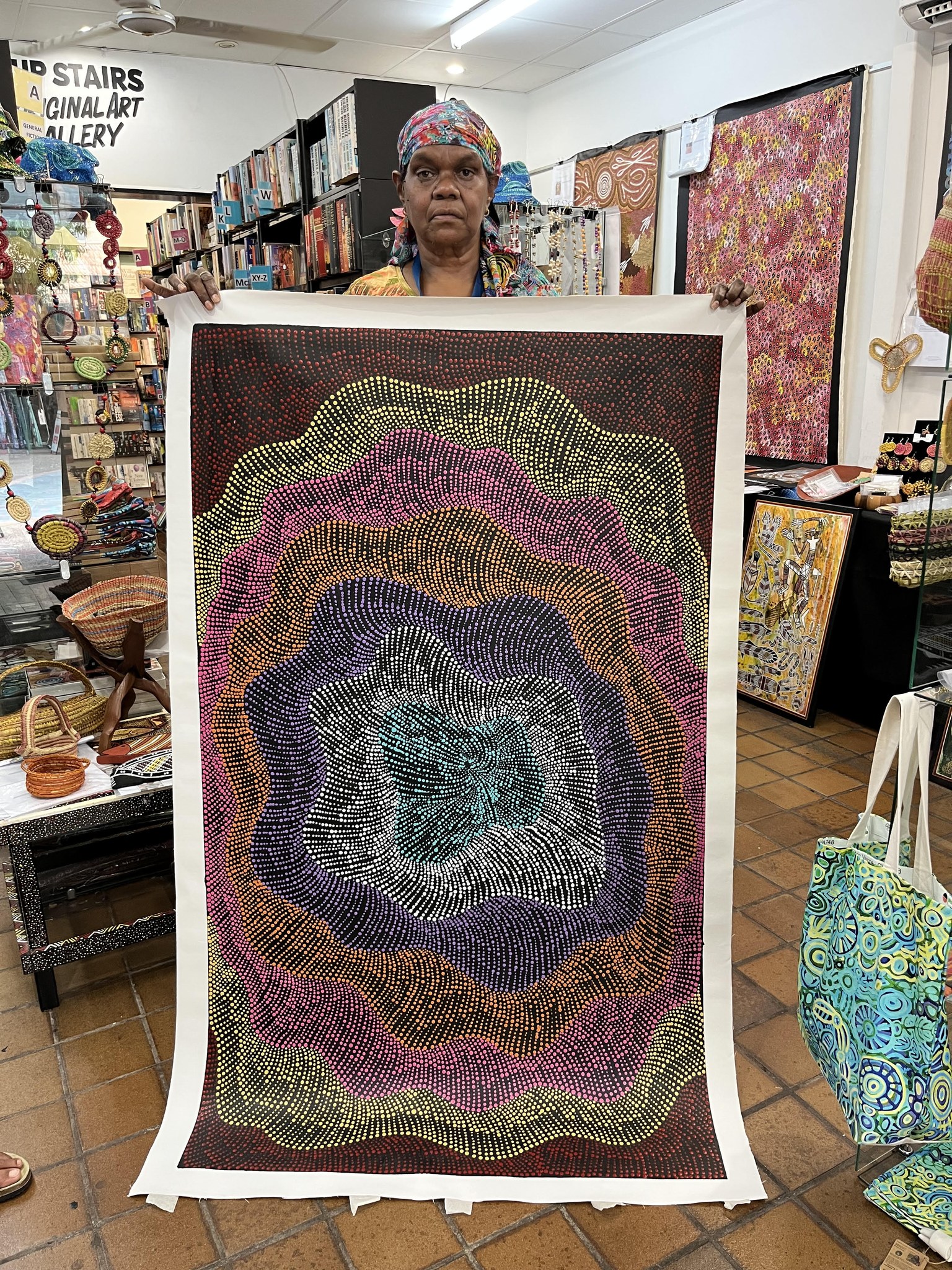 Readback Aboriginal Art Gallery conducts business on Larrakia Country. we acknowledge the Larrakia people as the Traditional Owners of the Darwin region and pay our respects to Larrakia elders, both past and present. Readback Aboriginal Art Gallery has been in business in Darwin since 1995. Our Authentic, AffordableAboriginal Art is purchased ethically, direct from local indigenous men and women artist's right here in the heart of Darwin in the Northern Territory. By buying locally it allows us to support, promote and offer a steady income to our skilled artists. Come on in and come upstairs to our air-conditioned gallery for a wide selection of traditional, contemporary and investment art. We like to think we have something for everyone!