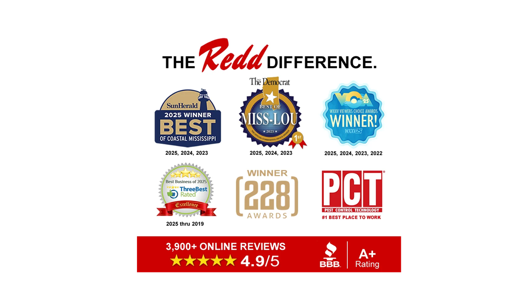 Highly rated, award-winning, and trusted pest control in Mississippi, Louisiana, and Alabama. Since 1952, Redd Pest Solutions has protected health, food, and property for families like yours. For peace with no pests, call the Redd Man today for a Free Inspection & Estimate!